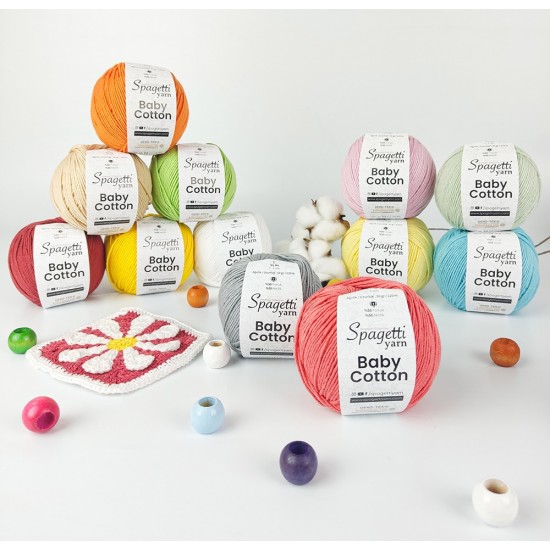 Spagetti Yarn Baby Cotton yumuşacık %50 pamuklu içeriği ile her türlü bebek örgüsü modellerinde güvenle kullanabileceğiniz bir ipliktir. Hem şiş hem de tığ ile kullanıma uygundur. Bebek ürünlerinin yanı sıra Amigurumi, giyim ve ev dekorasyon ürünleri içinde keyifle kullanabilirsiniz.